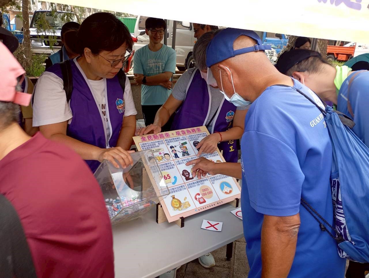為深化廉潔理念、提升全民防詐意識,金門縣政府政風處於114年9月27日結合「2025金沙風獅爺文化季」,攜手廉政志工設立宣導攤位,運用寓教於樂的方式推廣反貪與防詐觀念,引導民眾認識反貪腐、誠信經營、消費者保護及防詐騙等重點法治觀念。