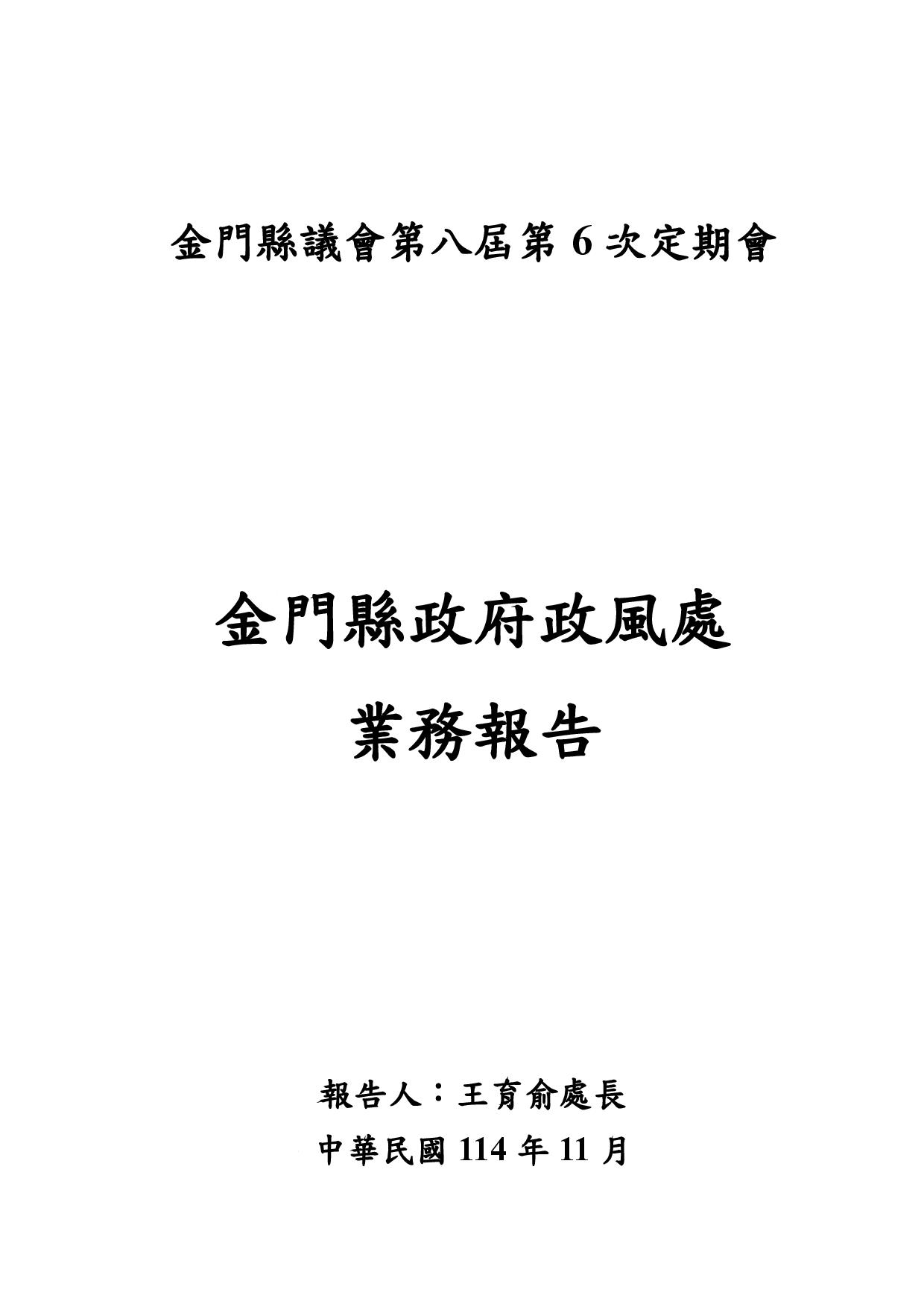 金門縣議會第八屆第6次定期會-政風業務報告(114年)