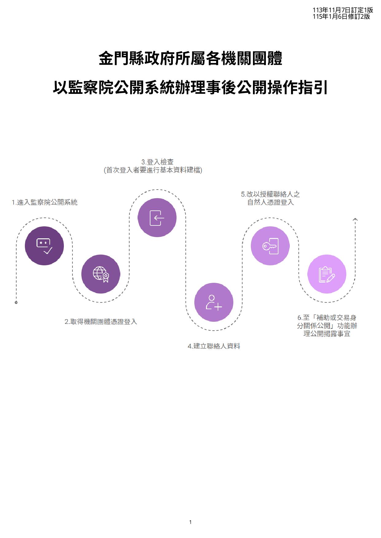 【指引】金門縣政府所屬各機關以監察院公開系統辦理公開揭露操作指引