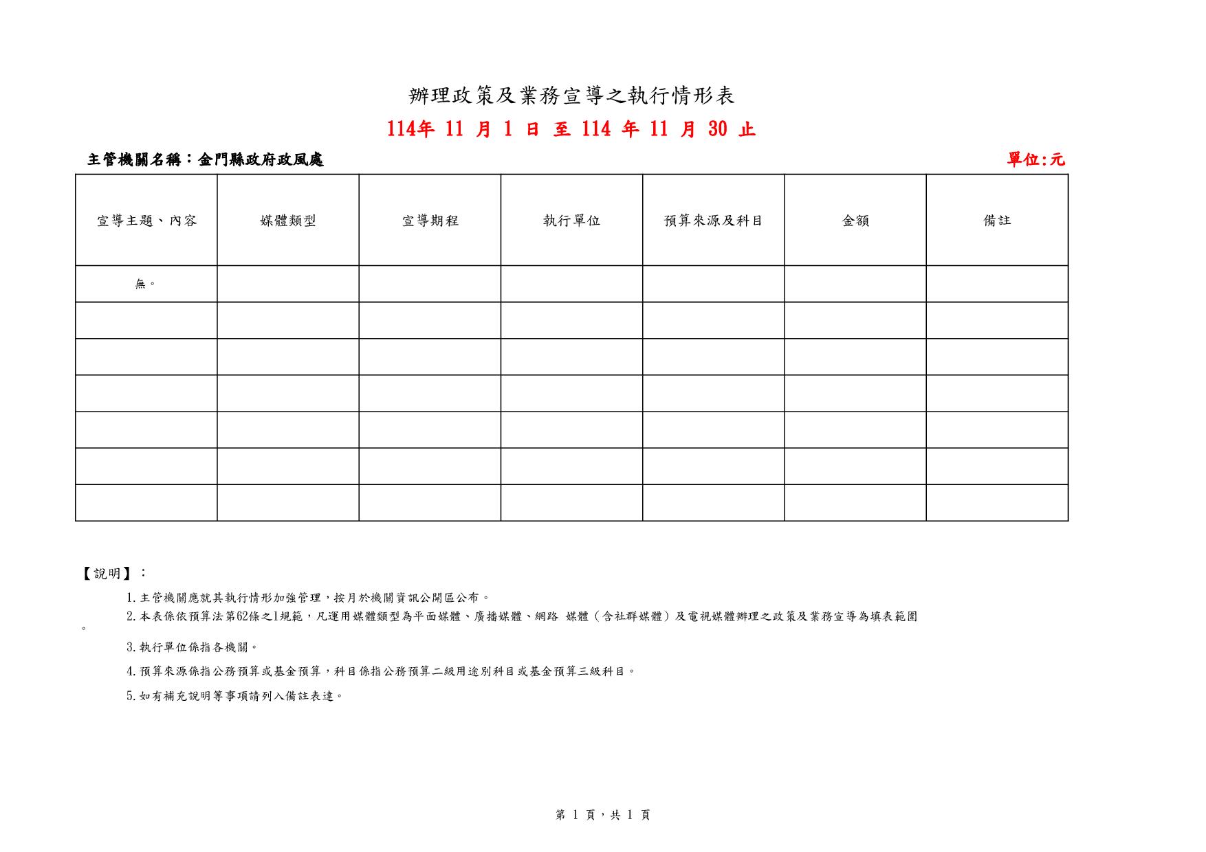 政風處114年11月辦理政策及業務宣導之執行情形表