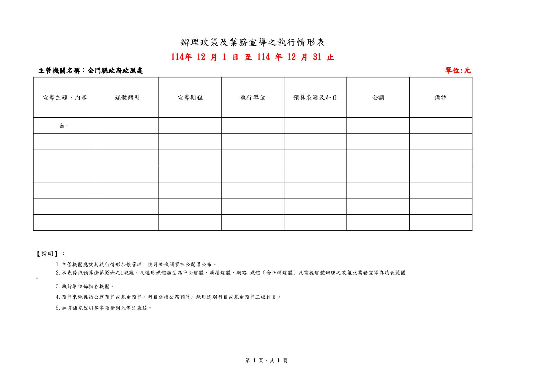 政風處114年12月辦理政策及業務宣導之執行情形表